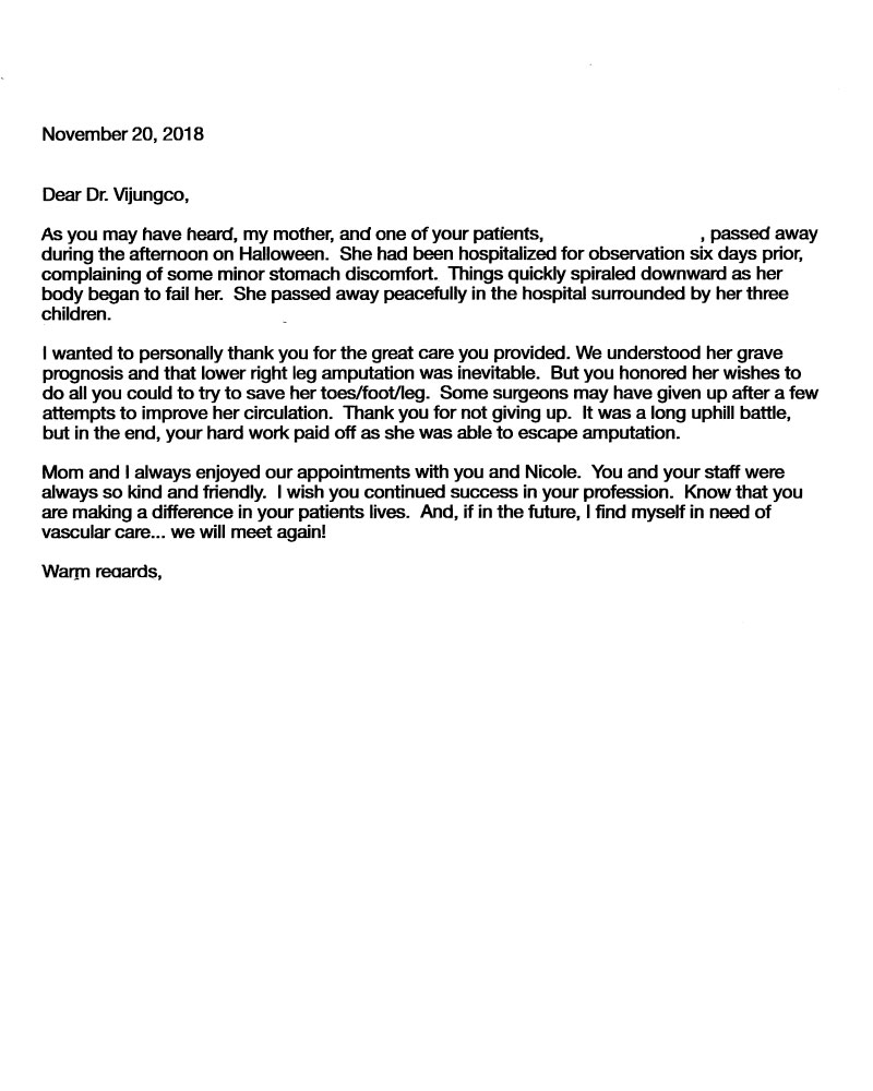 Dr. Vijungco is a board certified vascular and endovascular surgeon. He has a wealth of experience in the management of advanced arterial disease and venous disease.